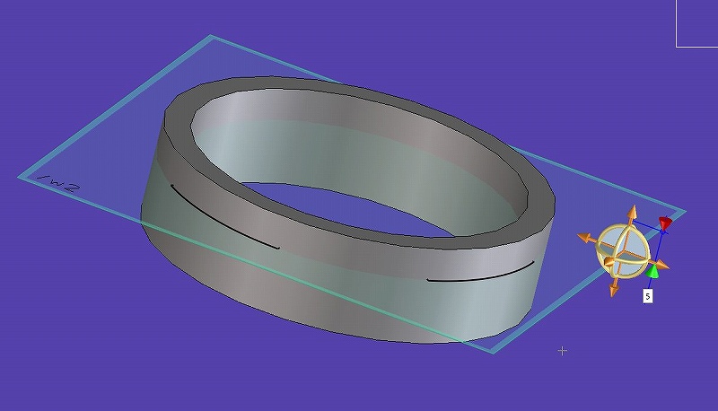 1.円筒の一部の直径を変える。 2.円筒の外周に溝を4カ所掘る。 いきなりですが、wpを垂直に立てて、一つのパーツを切断で3分割しています。 パーツのコピーを作って面を縮ませて作る手もあるし どっちでも作成できるので ここは流してしまいます。 ![]() 初期の設定ではパーツ分割の項目が出てこないので、 このページの後のほうで記述する方法で、 右クリックでのメニューに追加しておくと便利です。 というか、当時はカスタマイズしまくって、 個人メニューを作ってしまったので、 逆にまっさらなOSDだと使いにくいのなんの。 ![]() 同じ直径のパイプを外周だけ下から2番目のパイプ径を減らしたところ。 面を触って矢印を出して、出てきた寸法に35mm(仮)のところを 34mmと入力すれば1mm減らせます。 1.の項目は終了。 2.溝を外周円に掘る。 ここからは2dの作画と同じ。 但し、3Dをいじることになるので、 関連した2d図形を作ることだけ。 今まであったwpを利用して、(アクティブwpになっているwpへ)面を投影して、 (又は稜線を投影) 2つの円を書いて、線を、水平線とか鉛直船とか 線をセレクトして、コピー回転とかして、4本中心線を通る線を作成。 そこにある中心点とか、線を書くときに勝手に拾ってくれるので、 難しくないです。 ![]() 書いた線を中心で2つの線に分割しているところ。 (トリミングで対辺のところまで線がなくなってしまうから) 稜線を触って、メニューから稜線分割を選択して、中心点を触ればOK そのまま次の分割したい線を左クリックで選択して、中心を触れば 次の線も2分割線になります。 終わったら、中ボタンで確定、その項目終了。 同じように円も8分割して そのあといらない線を削除。 2Dわかっている人なら、線分の中間部分を分割しないで削除ってのも 同じようにできます。 ![]() 3dで必要なのは一筆書きの図形を作る。 線の出っ張ったところをトリミングで消していきます。 2dと同じ。 線の種類は実線以外は3D化のためには無視されます。 ここにはありませんが、ピンクの破線は補助線的なもの。 2つの線が途中で切れていても、一筆書きができれば問題なし。 ![]() なぜこんなことをするかというと、 2.パイプに溝をつけるため。 外形と内径じゃ溝を作ることができないので、 溝を作れるように、内径の分割線を移動外径から1mmへ。 ![]() 3Dを見せてますが、今やっているのはあくまで wp(アクティブwp)の線分への修正。 またトリミングで一筆書きに直す。 ![]() 当然最初から外径をコピーで寸法を マイナス1mmにして、トリミング。でも 同じ一筆書きになれば当然OK wpが円筒の端面にあるのでこの2dの形でパーツをなくしていくと、 パーツの上面を端から削除するだけなので、、、 |